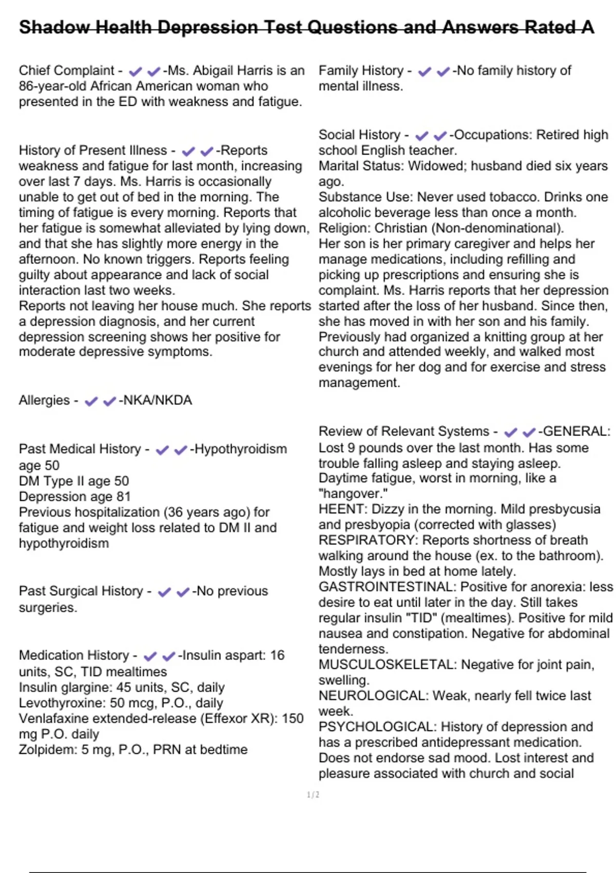 interaction last two weeks. complaint. Ms. Harris reports that her depression