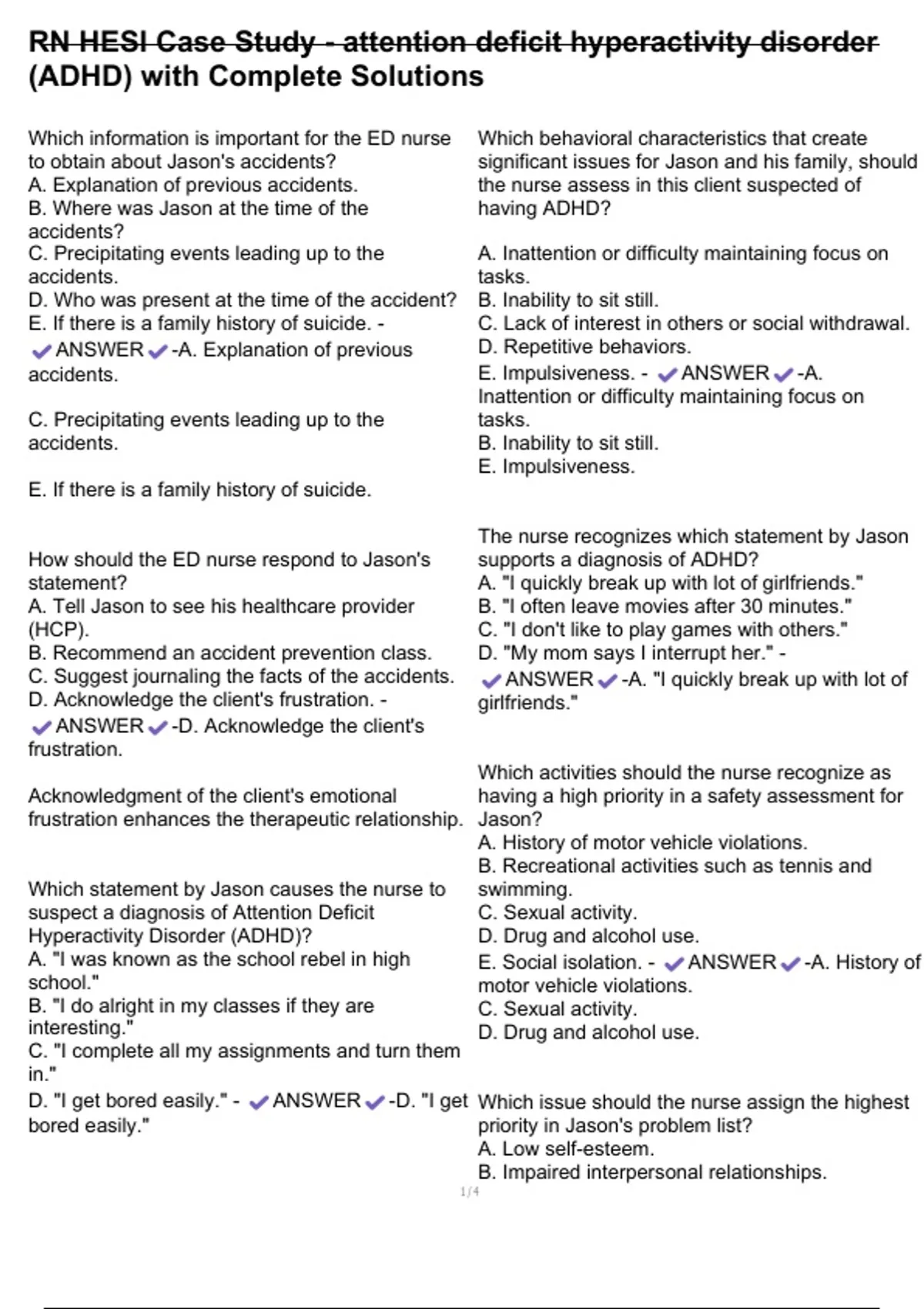How should the ED nurse respond to Jason's supports a diagnosis of ADHD?