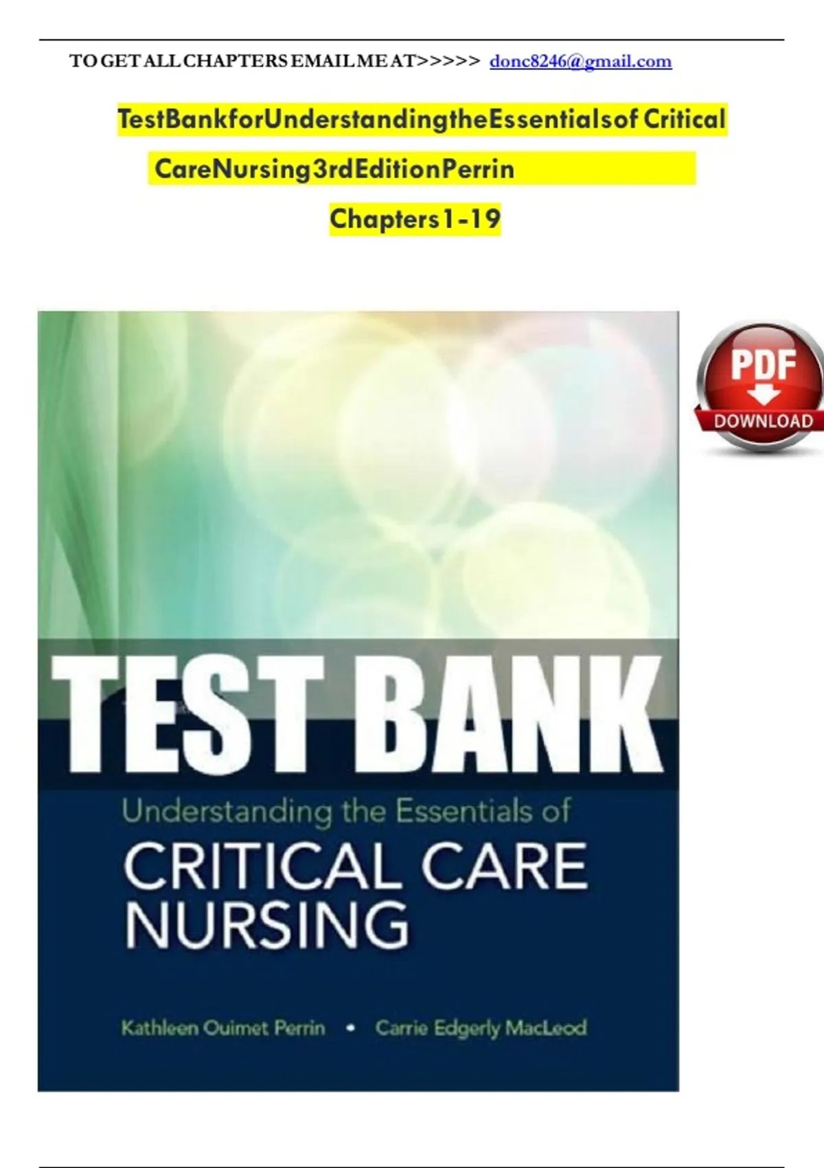TEST BANK FOR UNDERSTANDING THE ESSENTIALS OF CRITICAL CARE NURSING 3RD