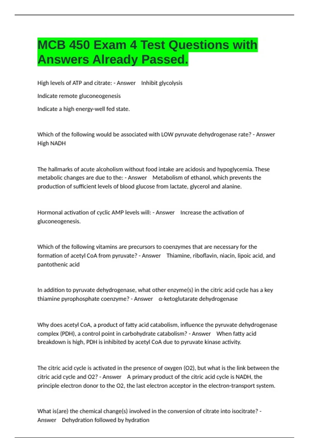 coenzymes? - Answer Pyruvate
