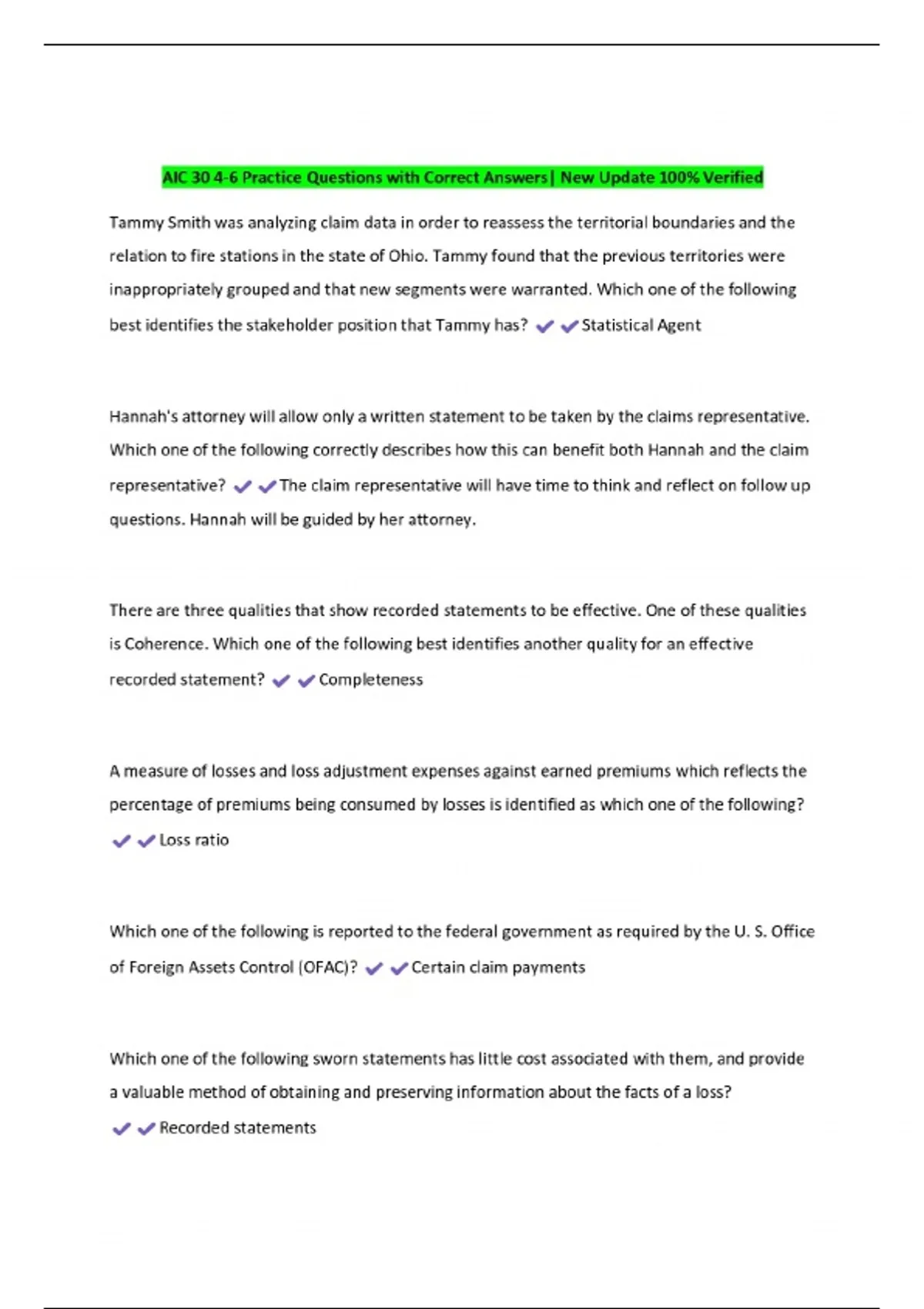 AIC 30 4-6 Practice Questions with Correct Answers| New Update 100% Verified