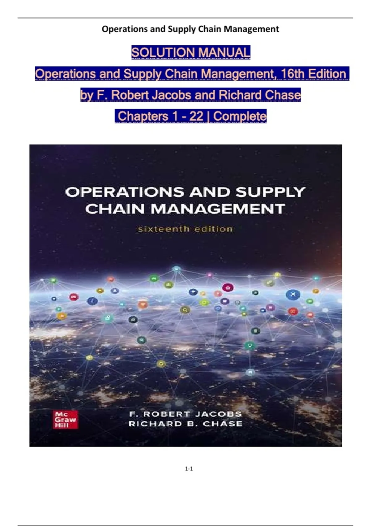 Solution Manual for Operations and Supply Chain Management 16th Edition by F. Robert Jacobs – Complete Verified Answers for College & University Students | Operations Strategy, Inventory Management, Logistics, Lean Systems, Forecasting, and Production Pla