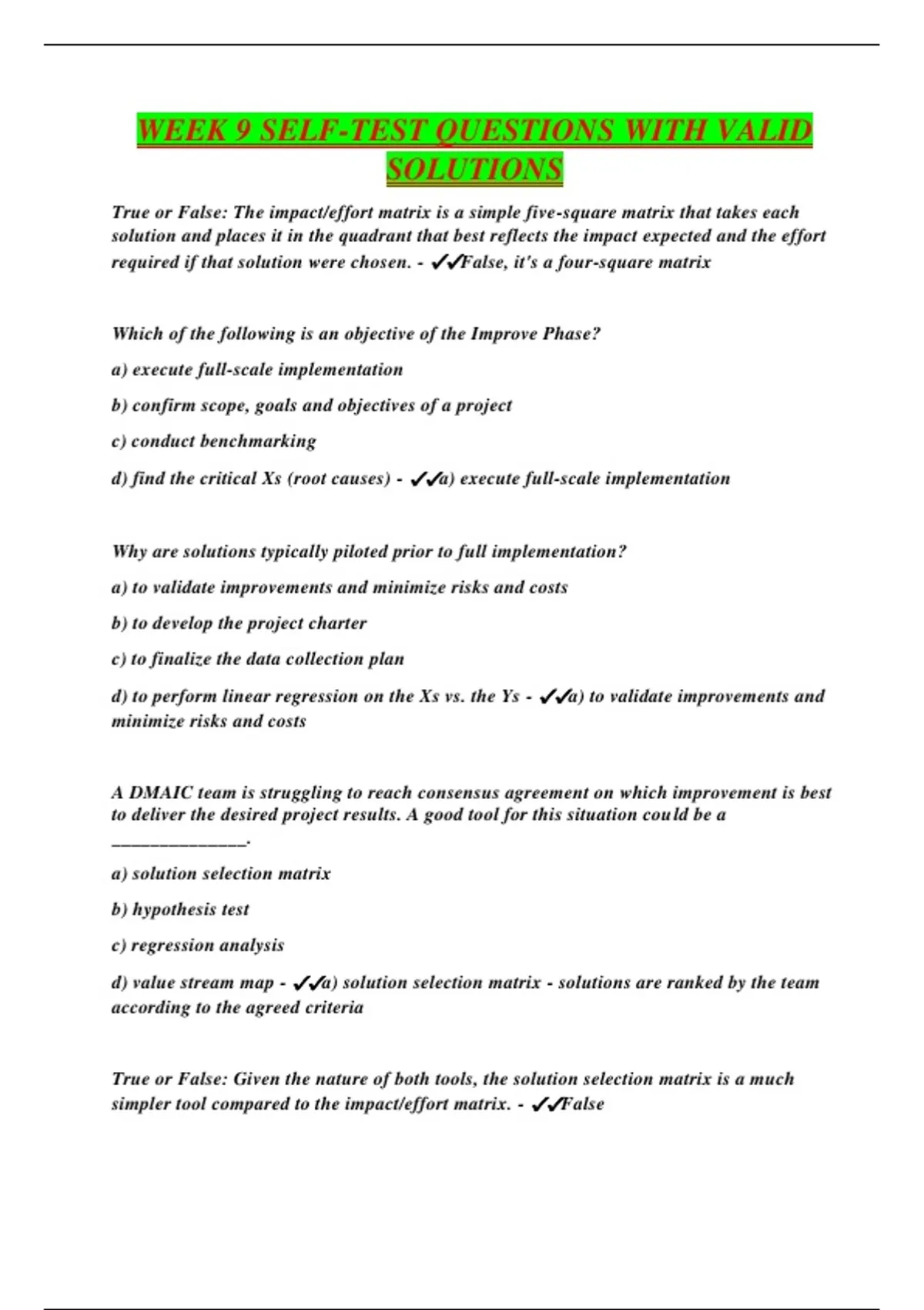 WEEK 9 SELF-TEST QUESTIONS WITH VALID SOLUTIONS