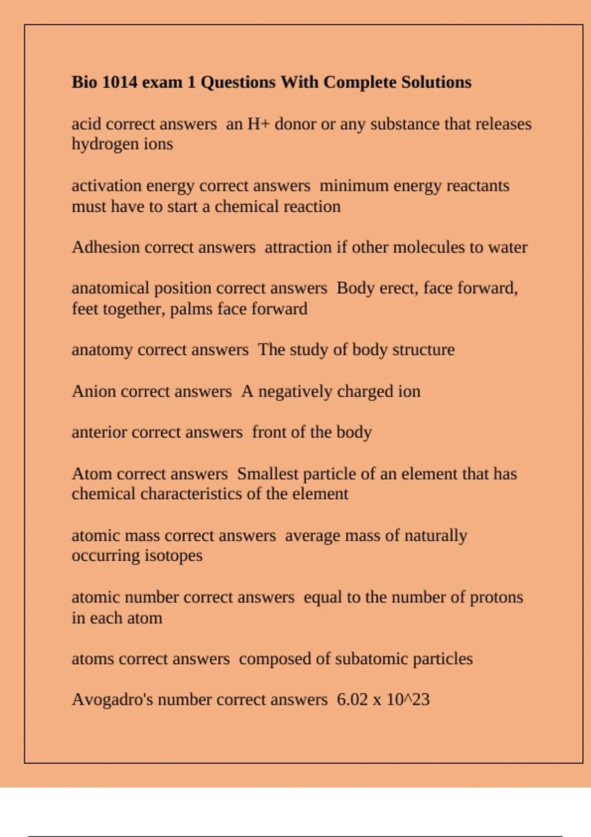 Anion correct answers A negatively charged ion