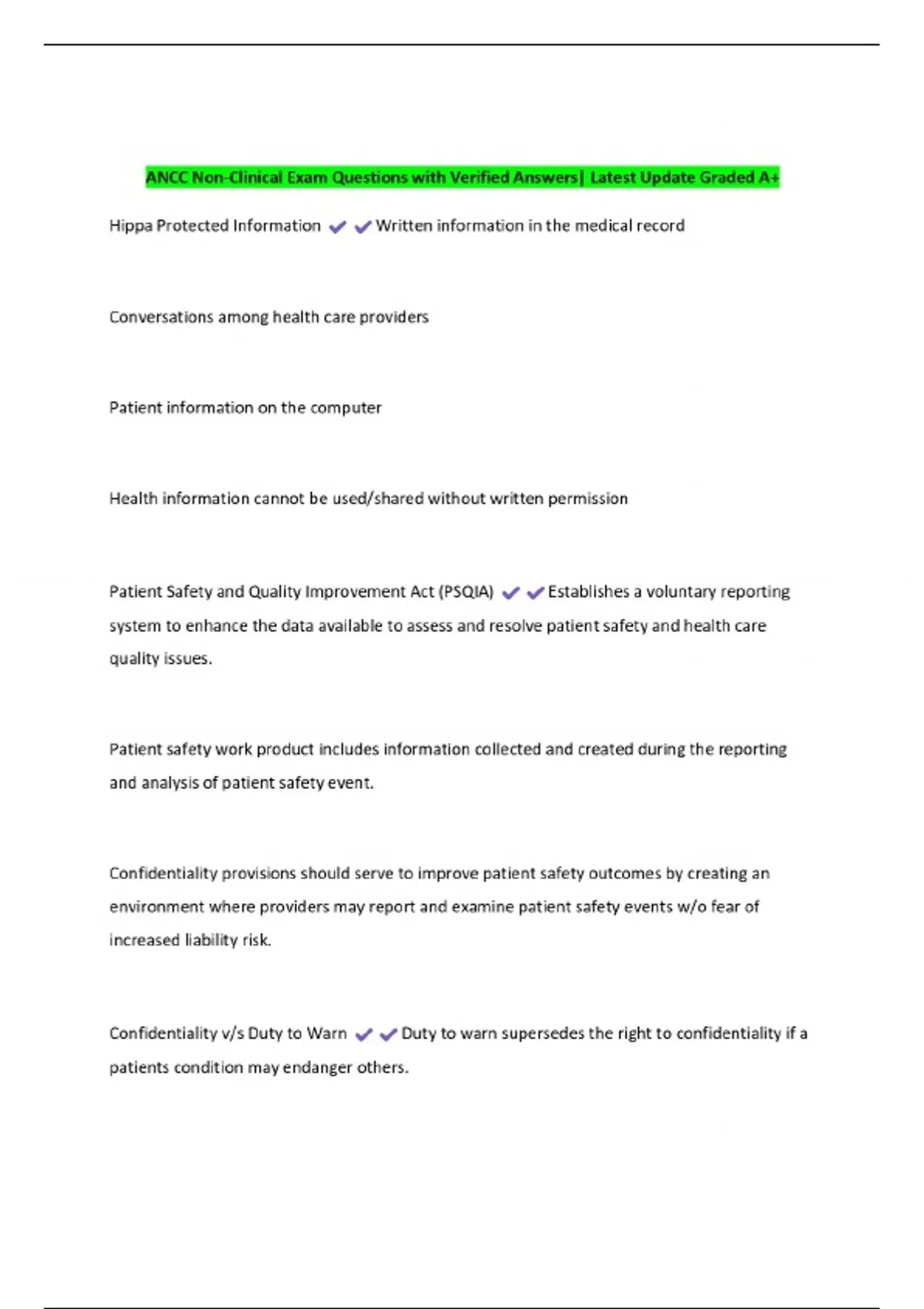 ANCC Non-Clinical Exam Questions with Verified Answers| Latest Update Graded A+