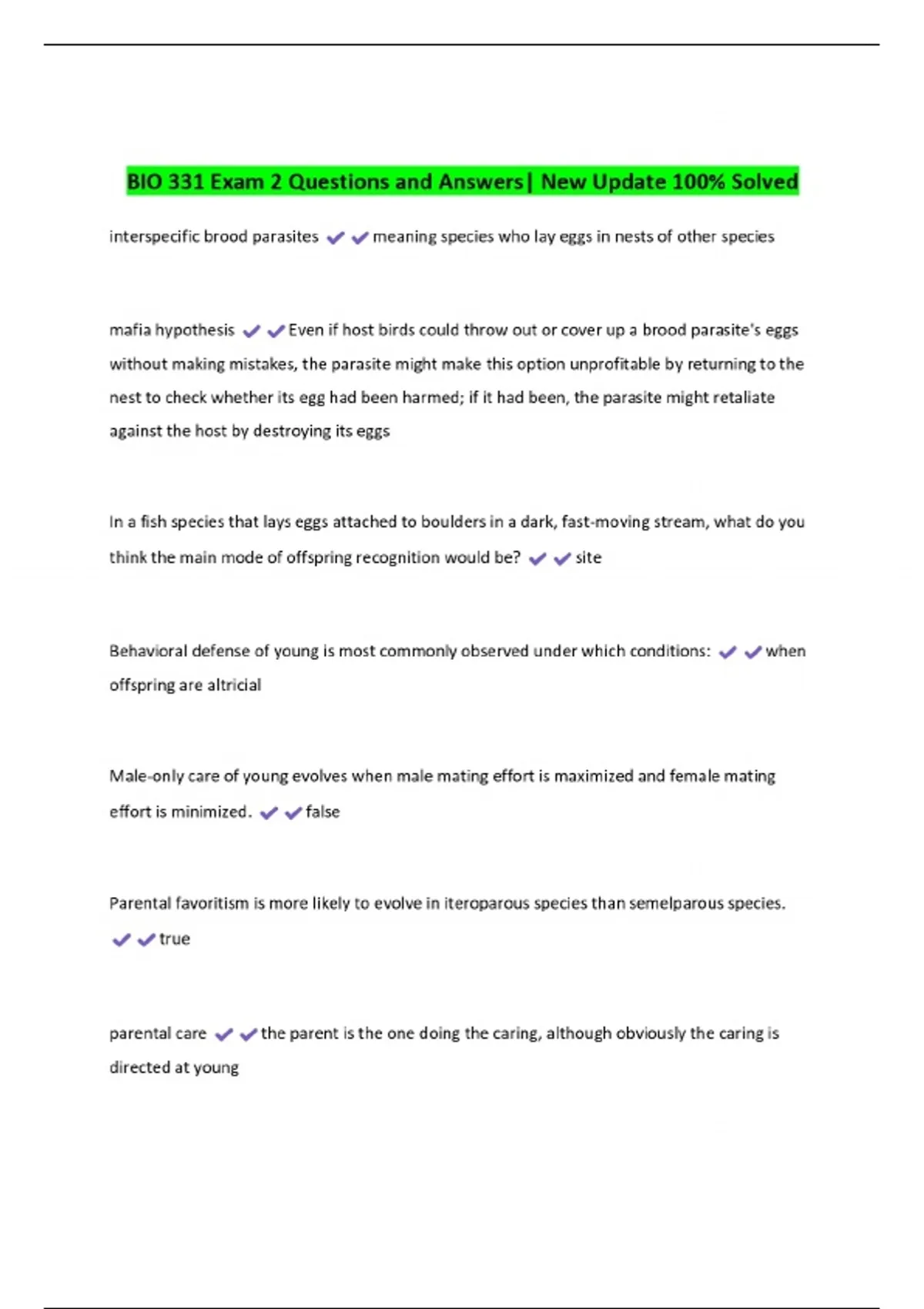 BIO 331 Exam 2 Questions and Answers| New Update 100% Solved