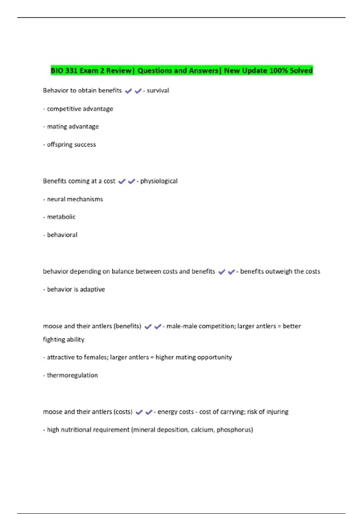 BIO 331 Exam 2 Review| Questions and Answers| New Update 100% Solved