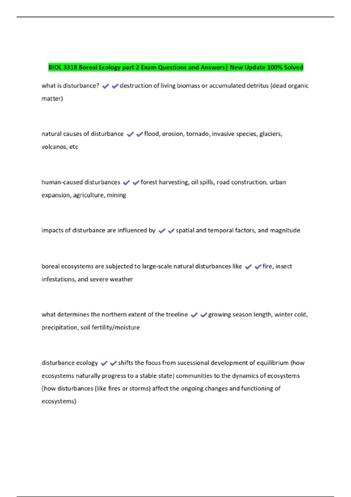 BIOL 3318 Boreal Ecology part 2 Exam Questions and Answers| New Update 100% Solved