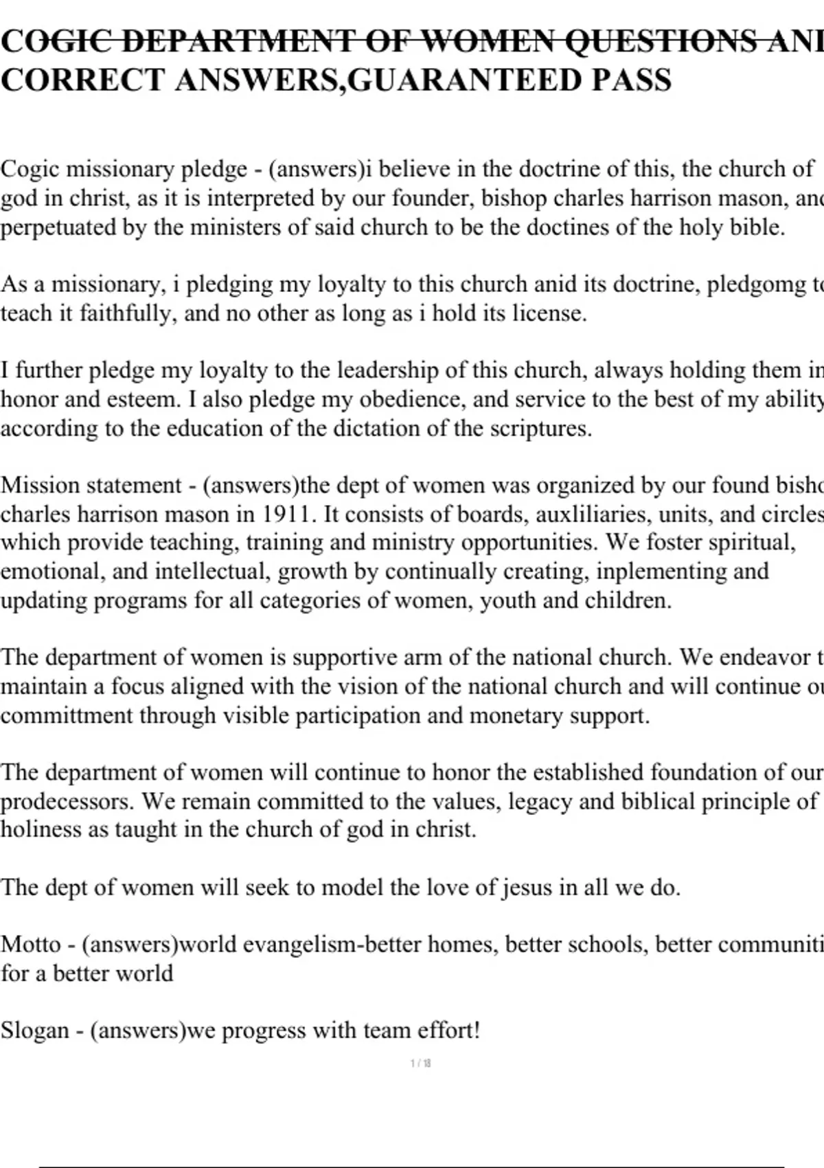 Cogic missionary pledge - (answers)i believe in the doctrine of this, the church of