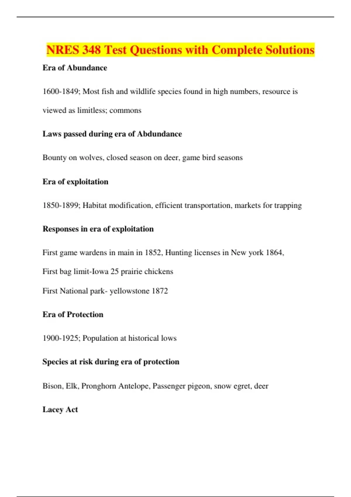 NRES 348 Test Questions with Complete Solutions
