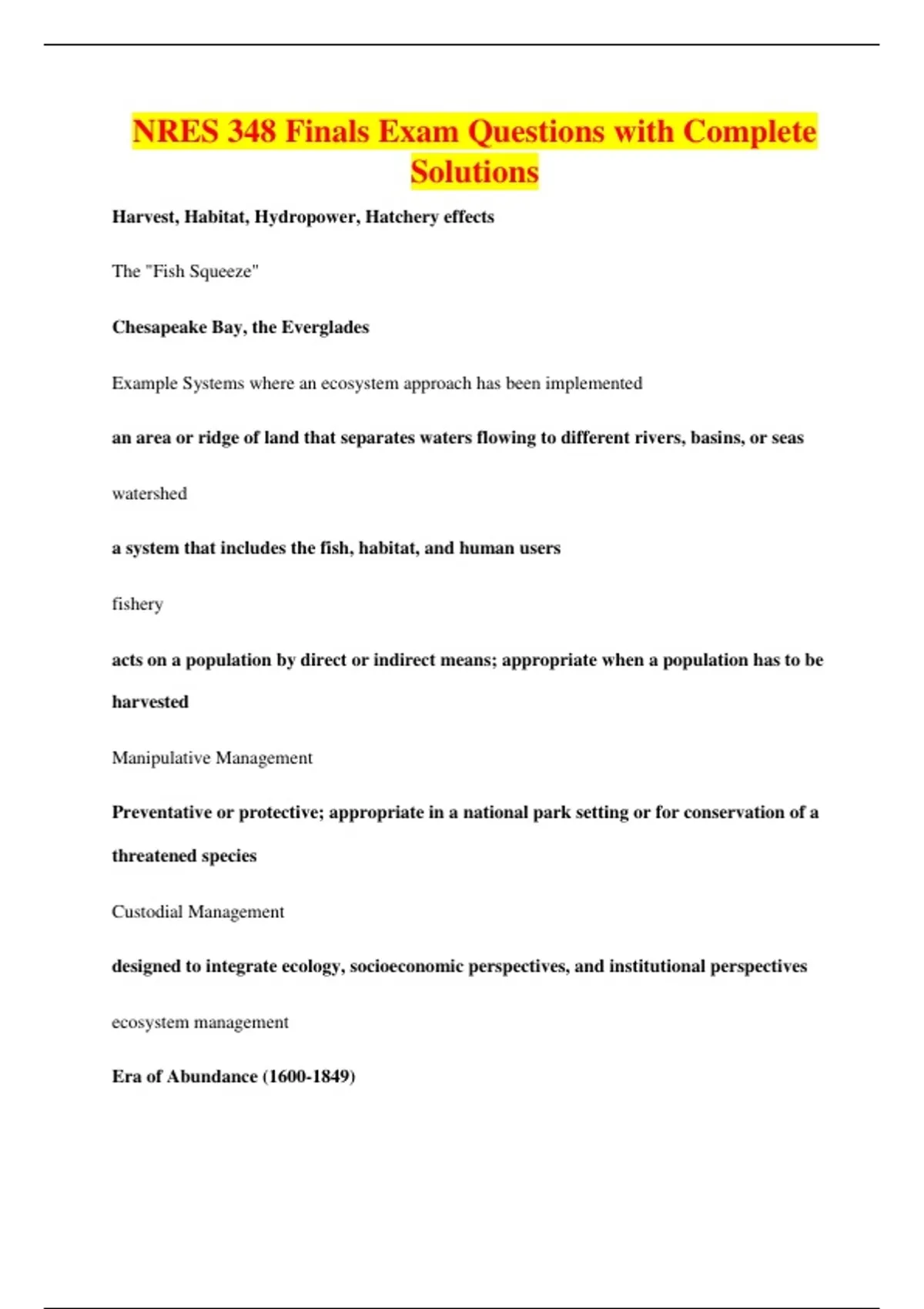 NRES 348 Finals Exam Questions with Complete