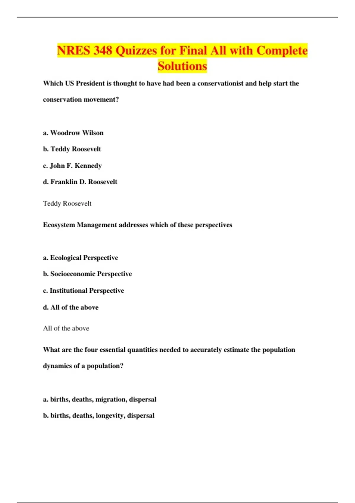 NRES 348 Quizzes for Final All with Complete
