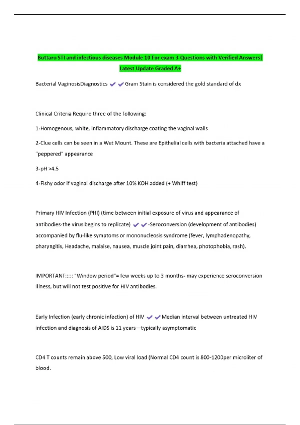 Buttaro STI and infectious diseases Module 10 For exam 3 Questions with Verified Answers| Latest Update Graded A+