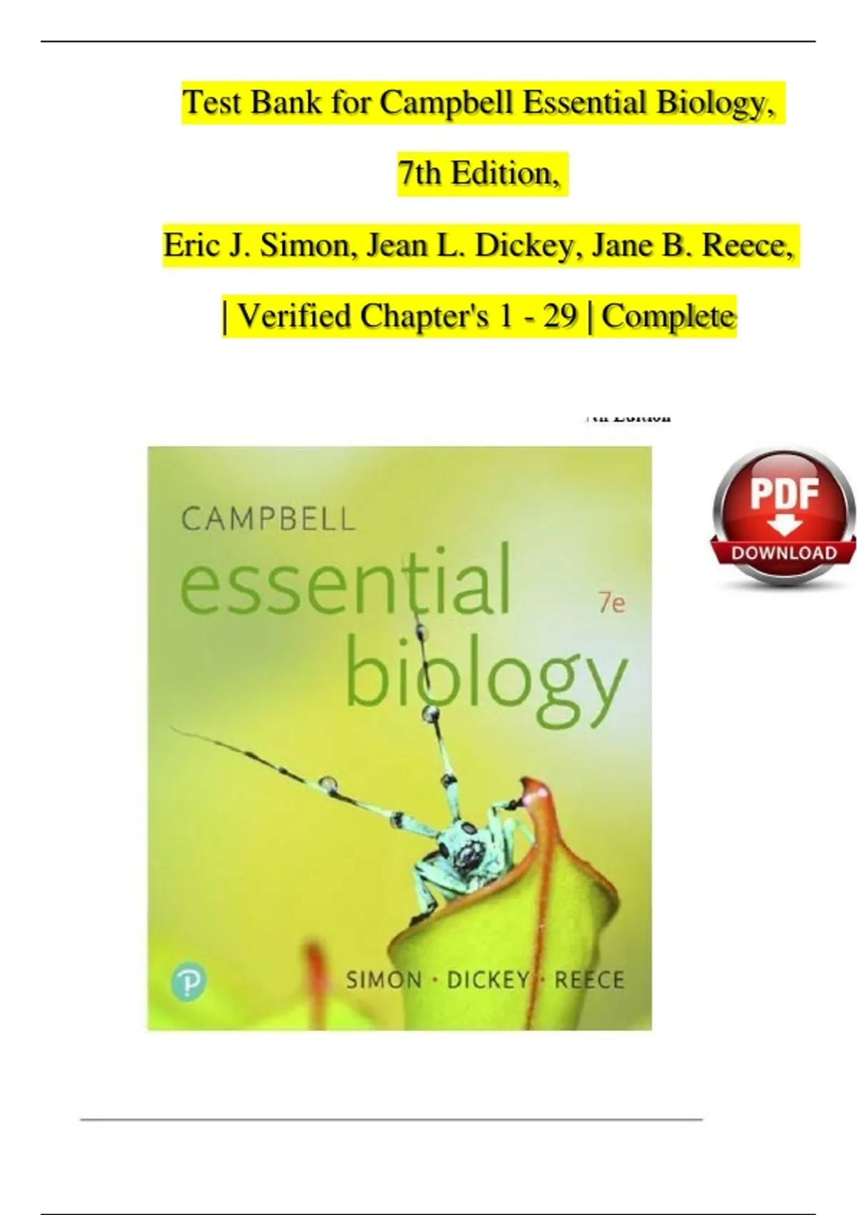 Test Bank for Campbell Essential Biology,