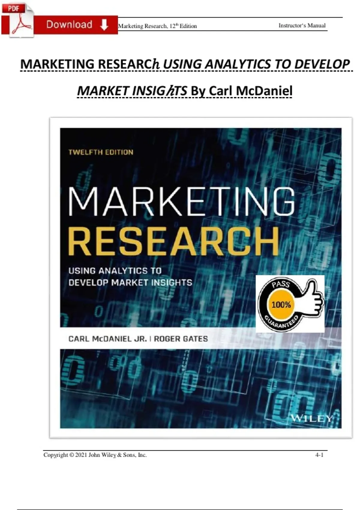 Full Solution Manual Marketing Research: Using Analytics to Develop Market Insights by Carl McDaniel | Verified Instructor’s Solutions (All Chapters Covered)