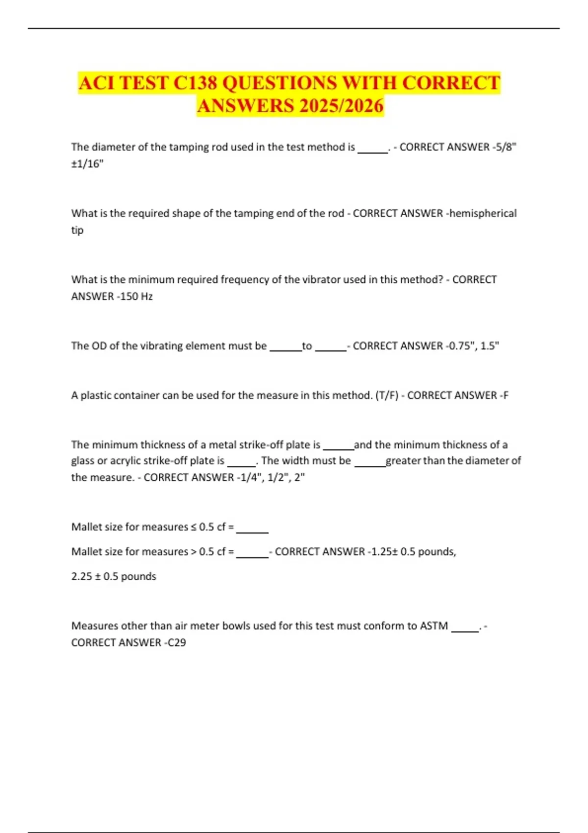 The diameter of the tamping rod used in the test method is . - CORRECT ANSWER -5/8"