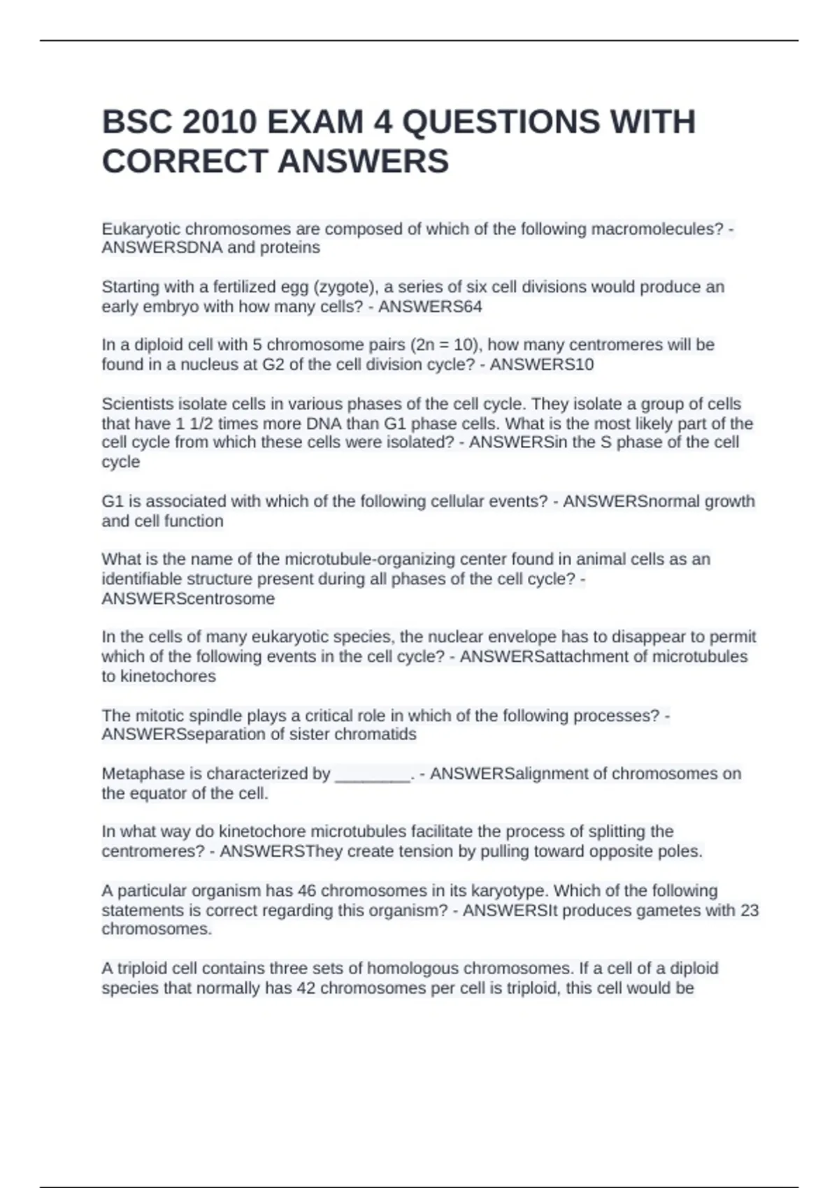 BSC 2010 EXAM 4 QUESTIONS WITH CORRECT ANSWERS