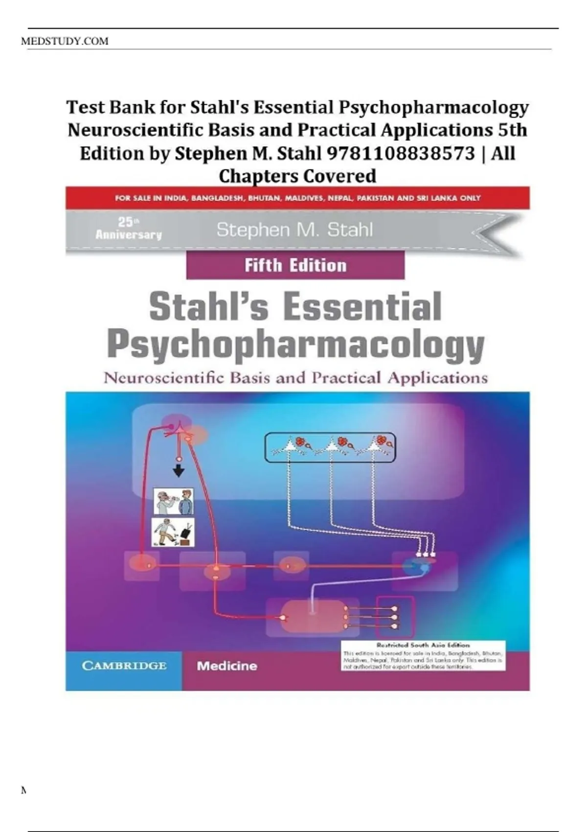 Test Bank for Stahl's Essential Psychopharmacology: Neuroscientific Basis and Practical Applications 5th Edition by Stephen M. Stahl ||ISBN:9781108838573