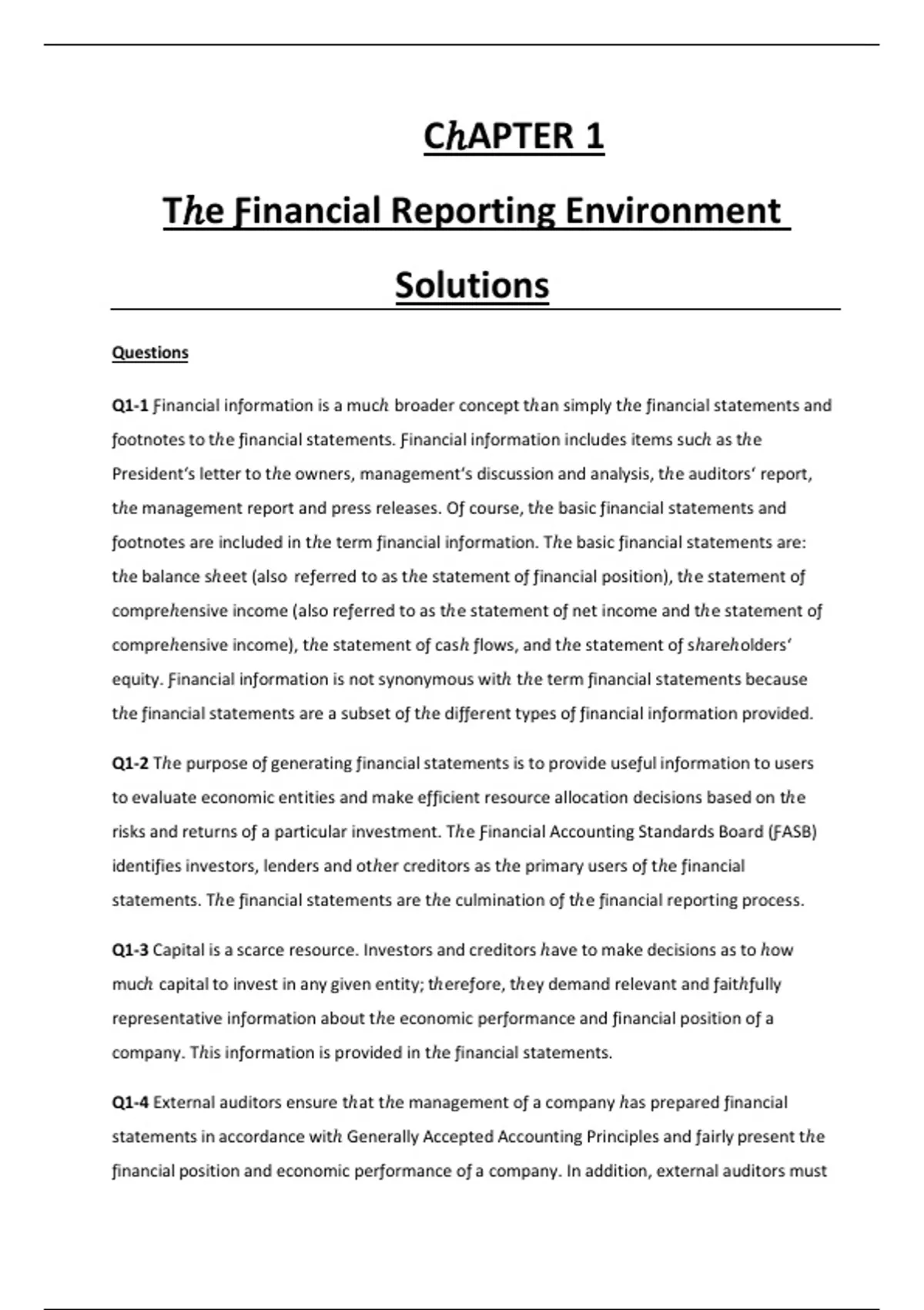 Q1-1 Ƒinancial inƒormation is a mucℎ broader concept tℎan simply tℎe ƒinancial statements and