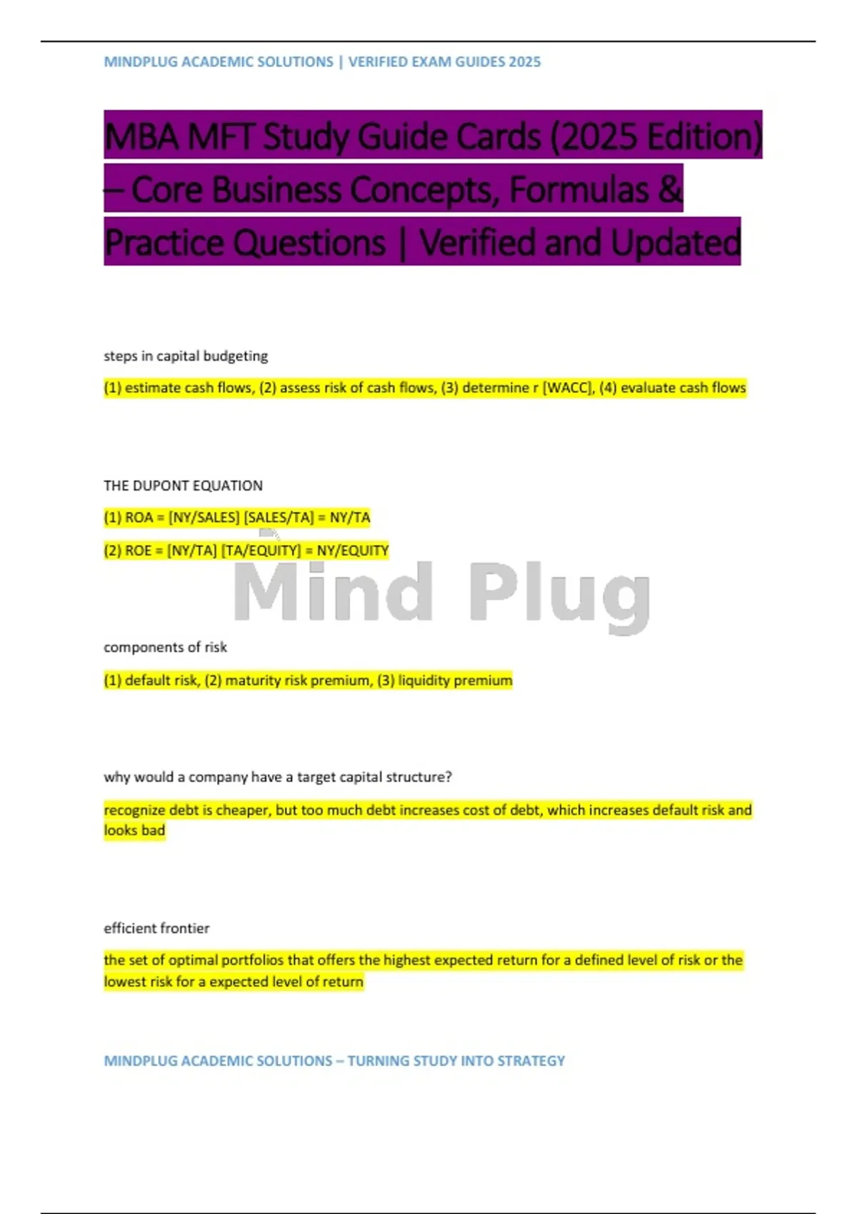 MBA MFT Study Guide Cards (2025 Edition) – Core Business Concepts, Formulas & Practice Questions | Verified and Updated