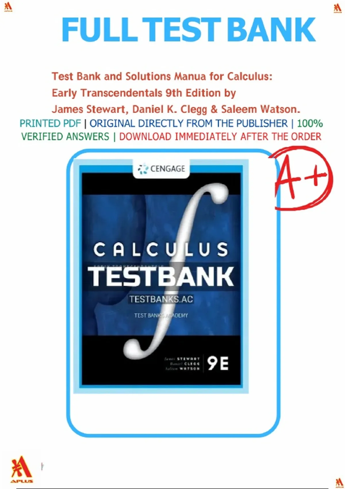 Solutions for Calculus: Early Transcendentals 9th Edition by James Stewart, Daniel K. Clegg & Saleem Watson.|Complete Test Bank and Solution Manual.|Latest Update.