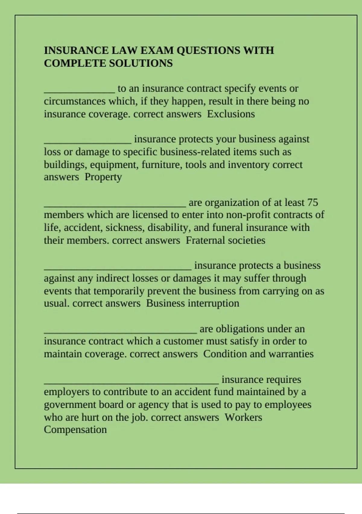insurance coverage. correct answers Exclusions