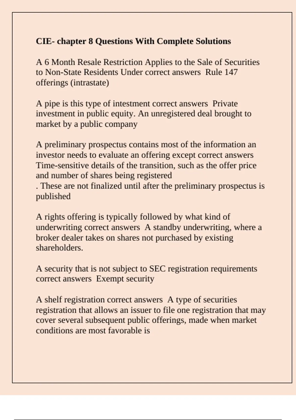 A shelf registration correct answers A type of securities