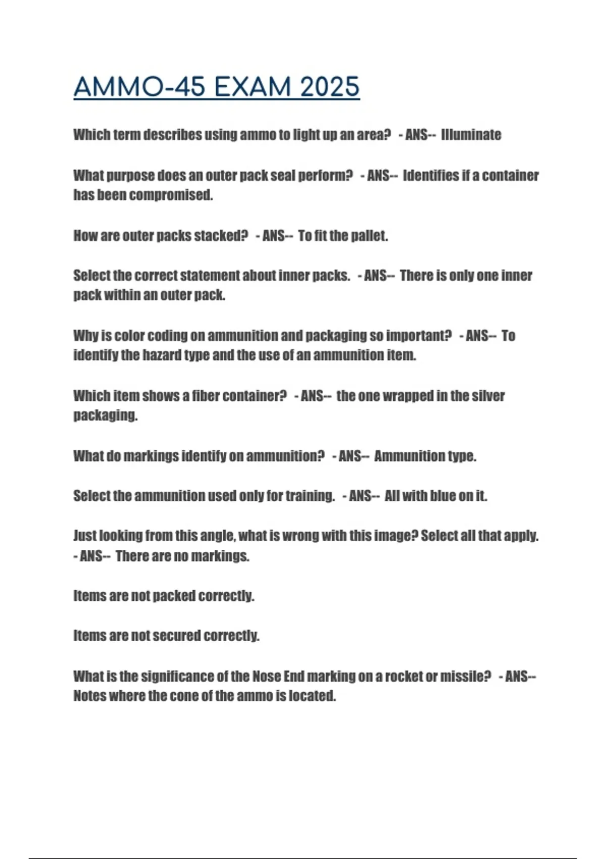 What do markings identify on ammunition? - ANS-- Ammunition type.