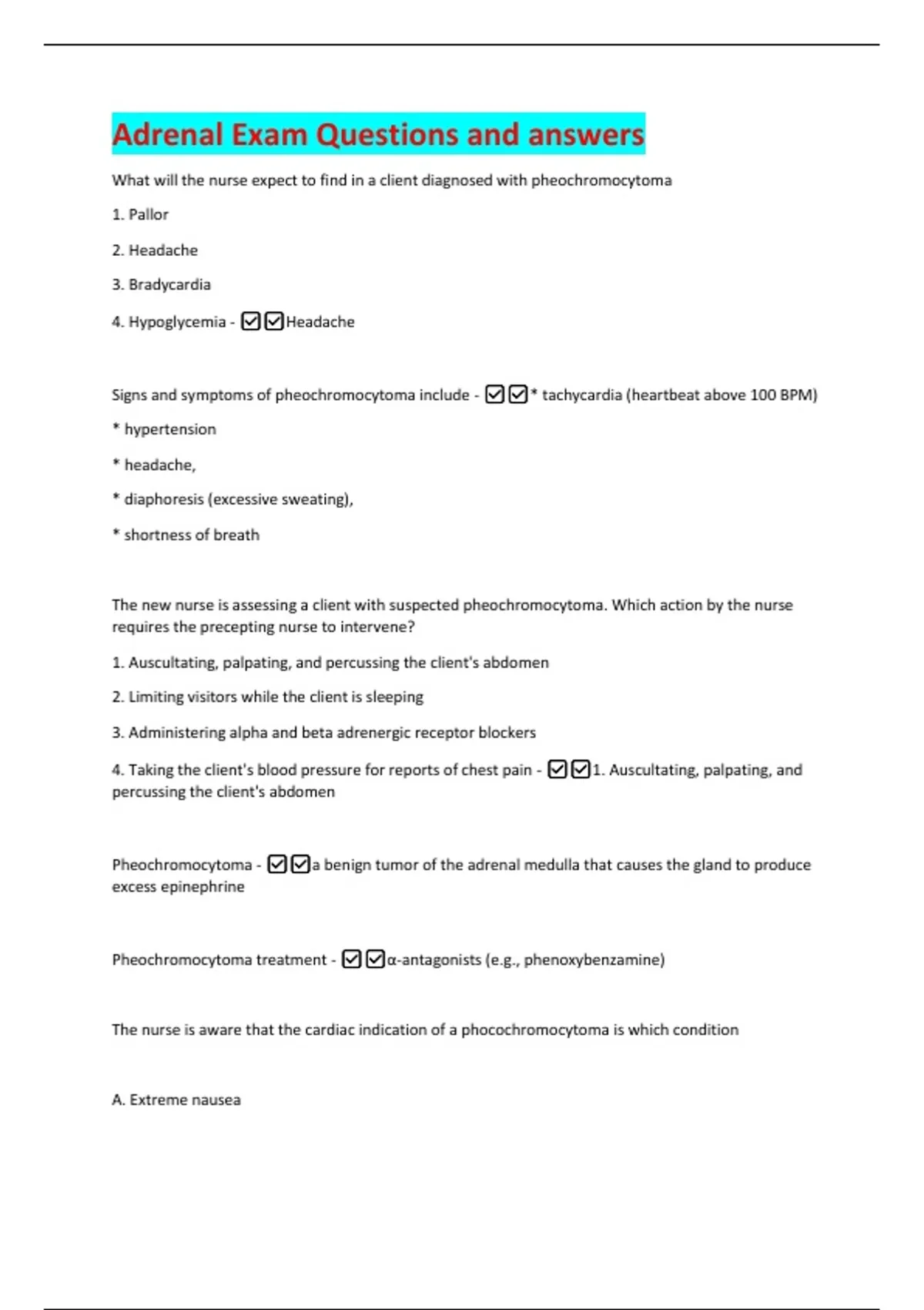 Signs and symptoms of pheochromocytoma include - ✅✅* tachycardia (heartbeat above 100 BPM)