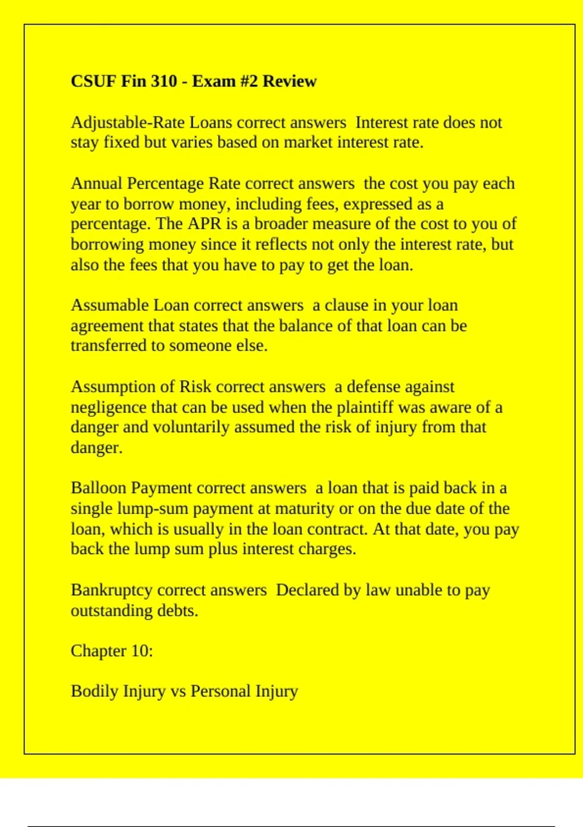Adjustable-Rate Loans correct answers Interest rate does not
