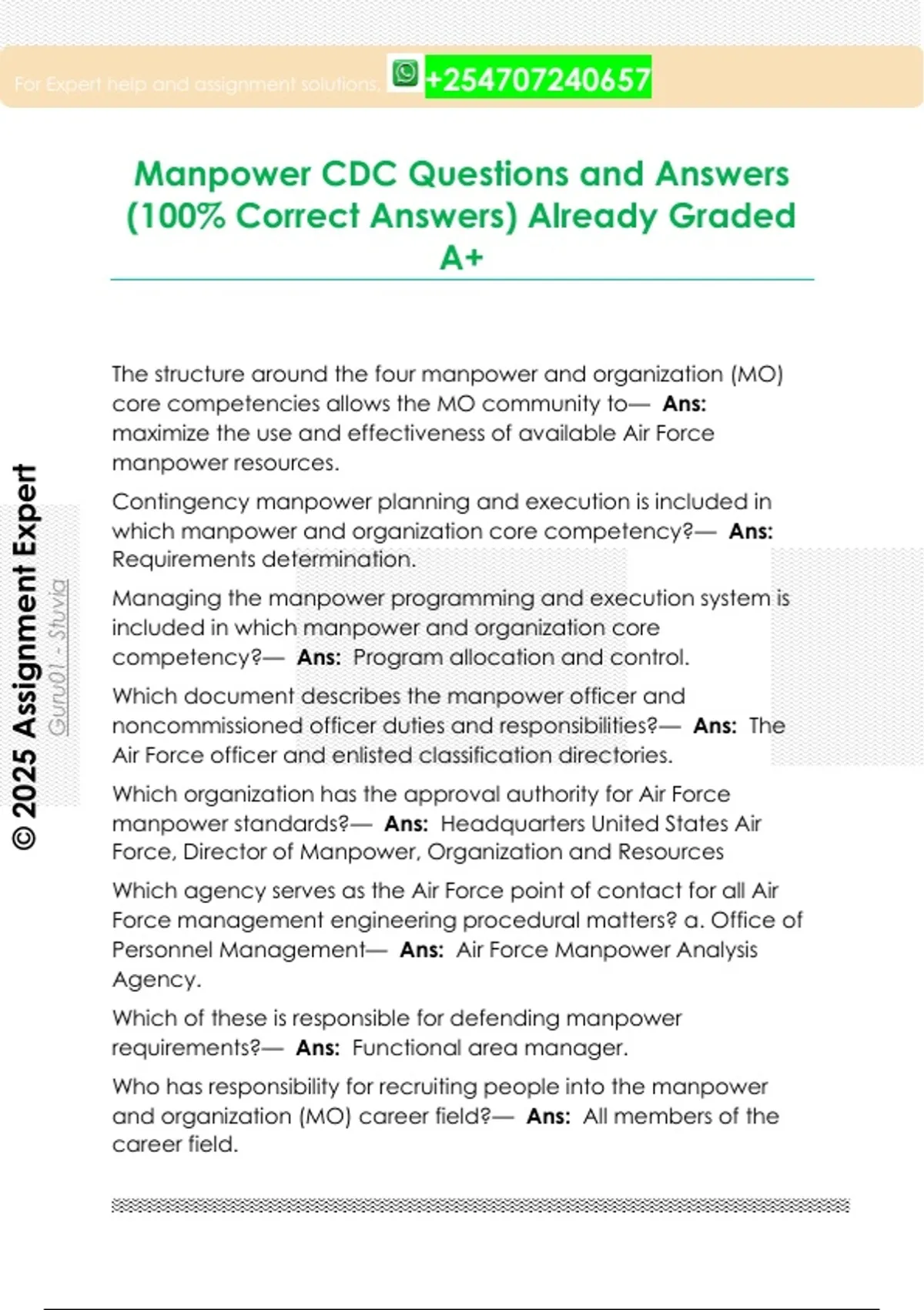 Manpower CDC Questions and Answers (100% Correct Answers) Already Graded A+