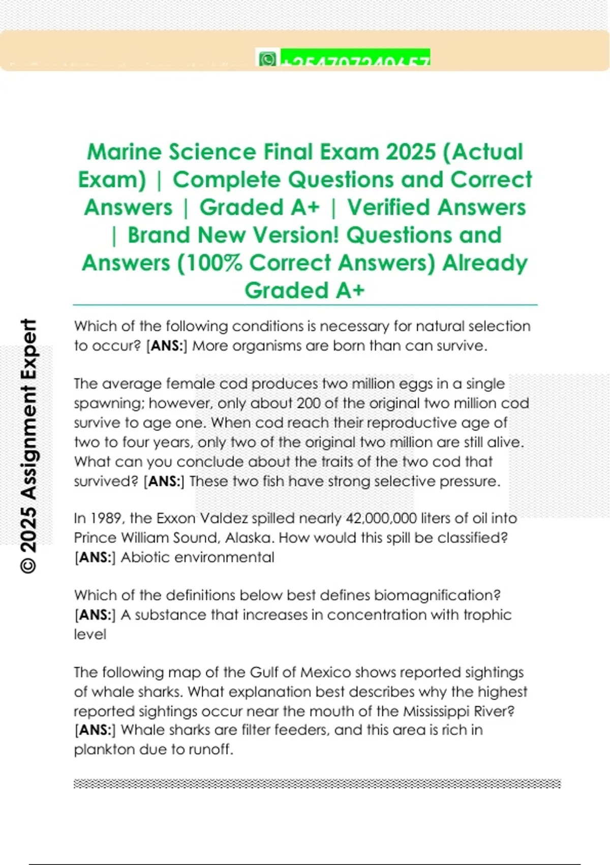 Marine Science Final Exam 2025 (Actual