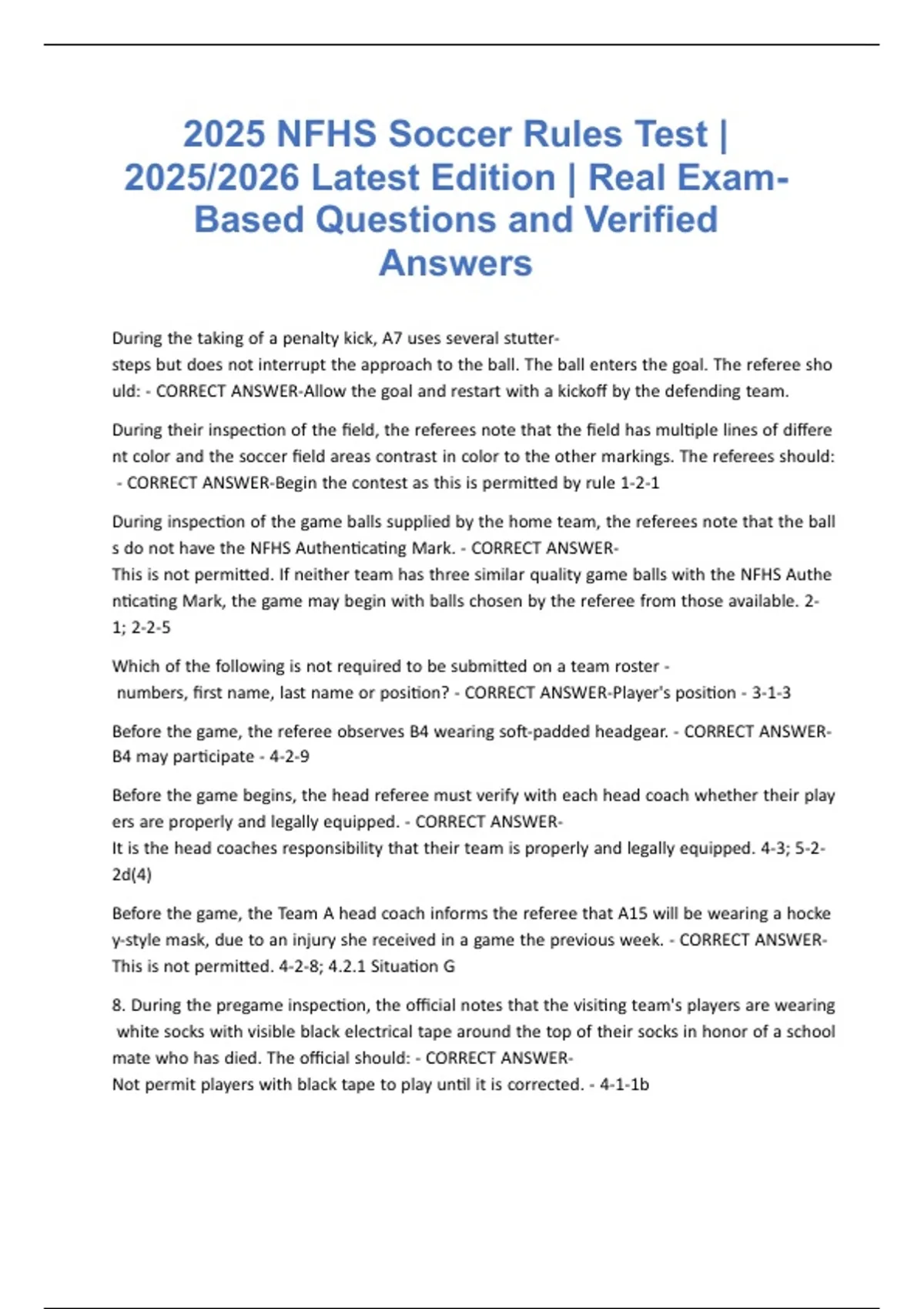 2025 NFHS Soccer Rules Test Latest Edition Real Exam-Based Questions and Verified Answers