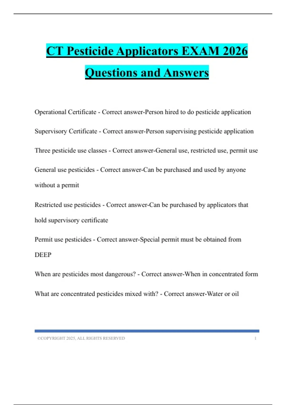 CT Pesticide Applicators EXAM 2026 Questions and Answers
