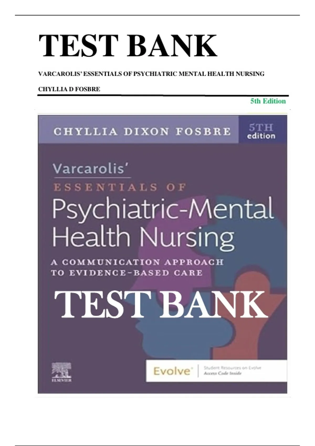 TEST BANK VARCAROLIS’ESSENTIALS OF PSYCHIATRIC MENTAL HEALTH NURSING CHYLLIA D FOSBRE 5th Edition