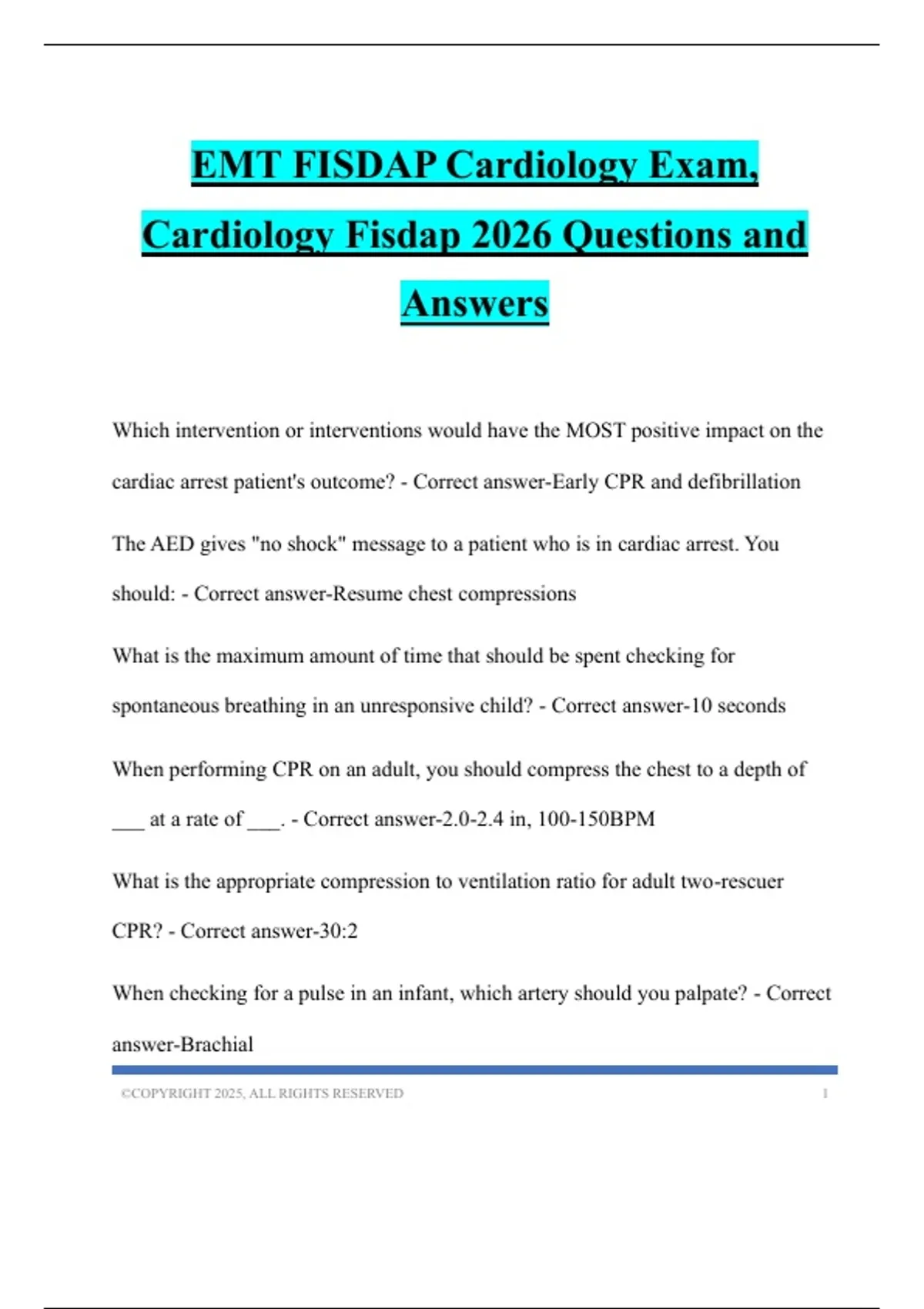 EMT FISDAP Cardiology Exam,