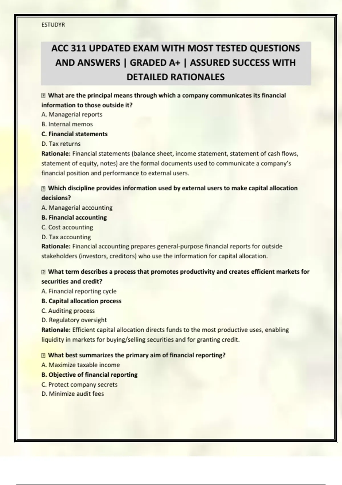 ACC 311 UPDATED EXAM WITH MOST TESTED QUESTIONS