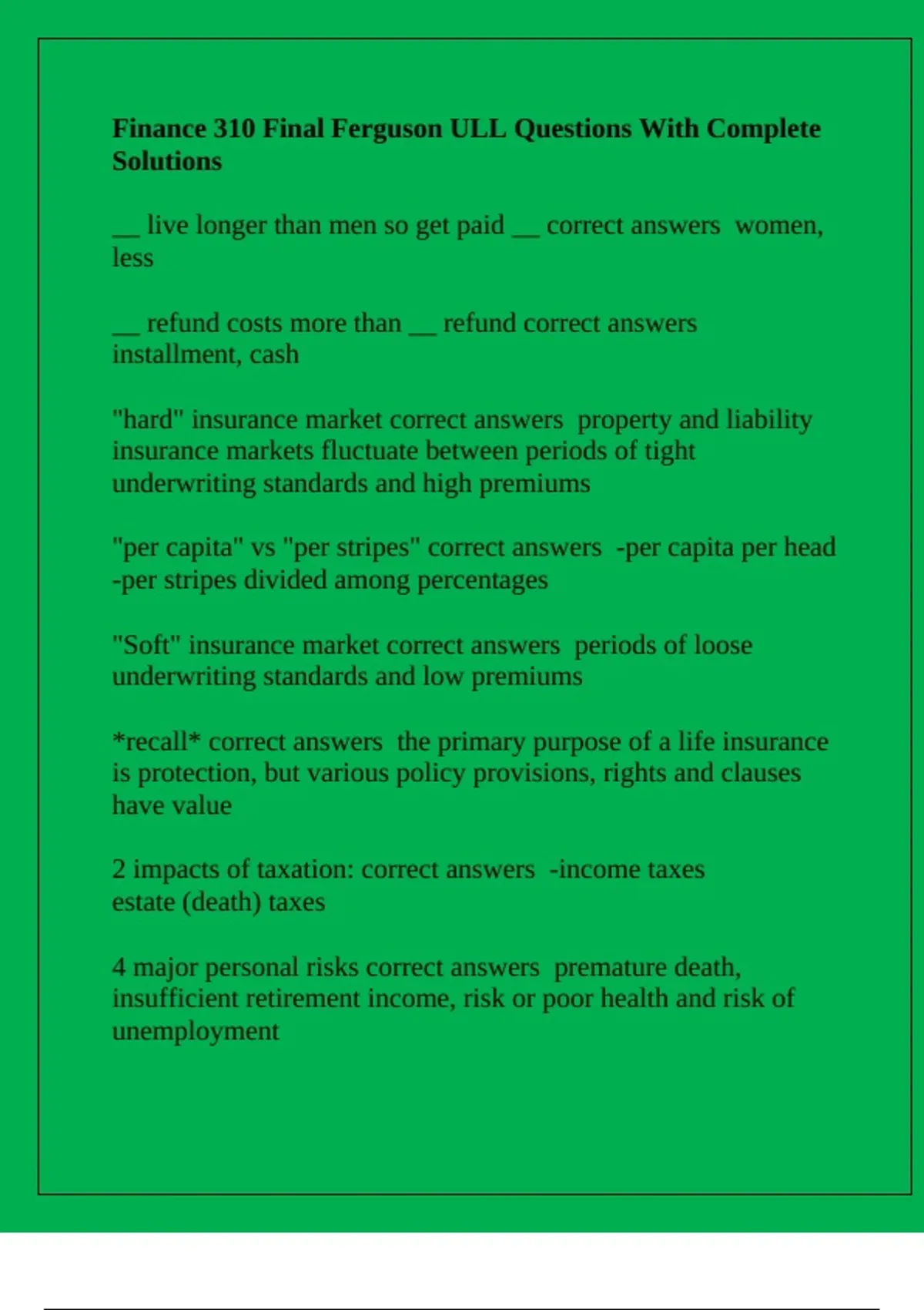 4 major personal risks correct answers premature death,
