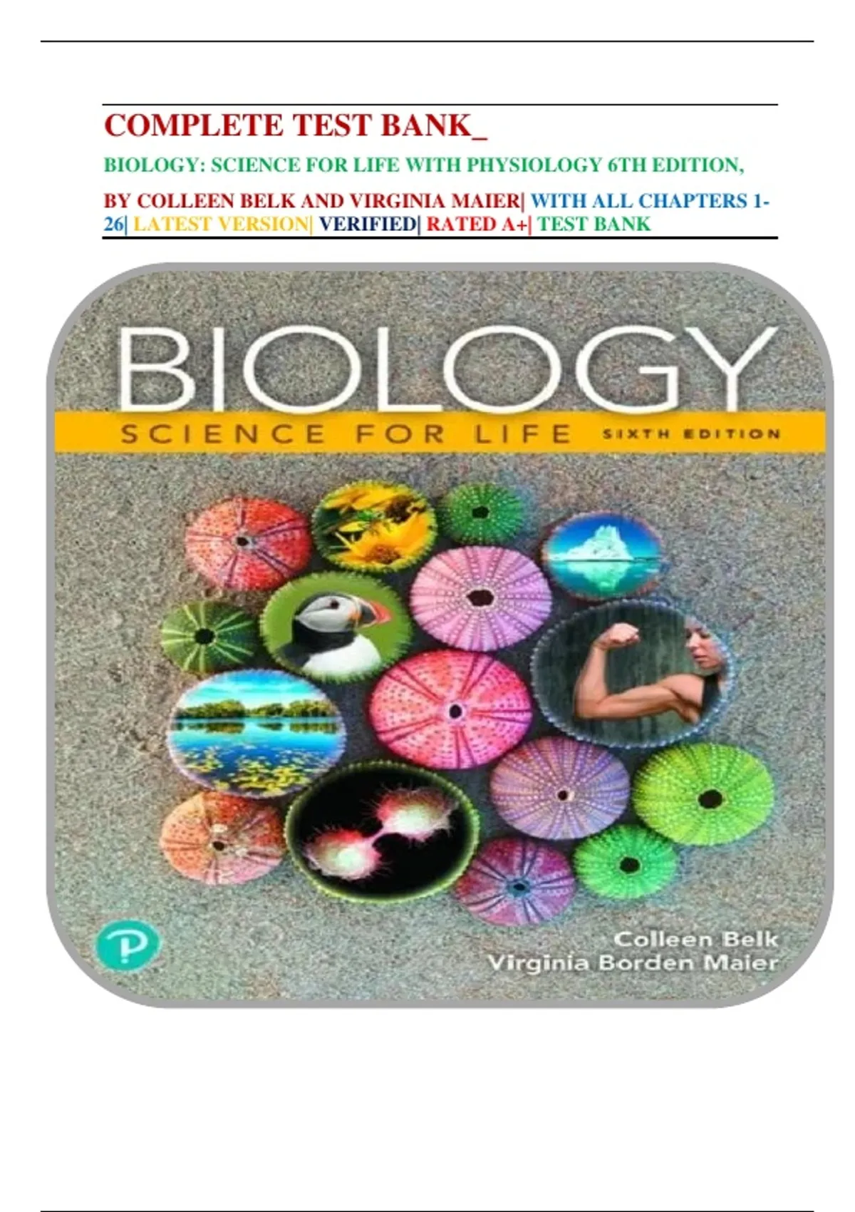 COMPLETE TEST BANK_ BIOLOGY: SCIENCE FOR LIFE WITH PHYSIOLOGY 6TH EDITION, BY COLLEEN BELK AND VIRGINIA MAIER| WITH ALL CHAPTERS 1-26| LATEST VERSION| VERIFIED| RATED A+| TEST BANK