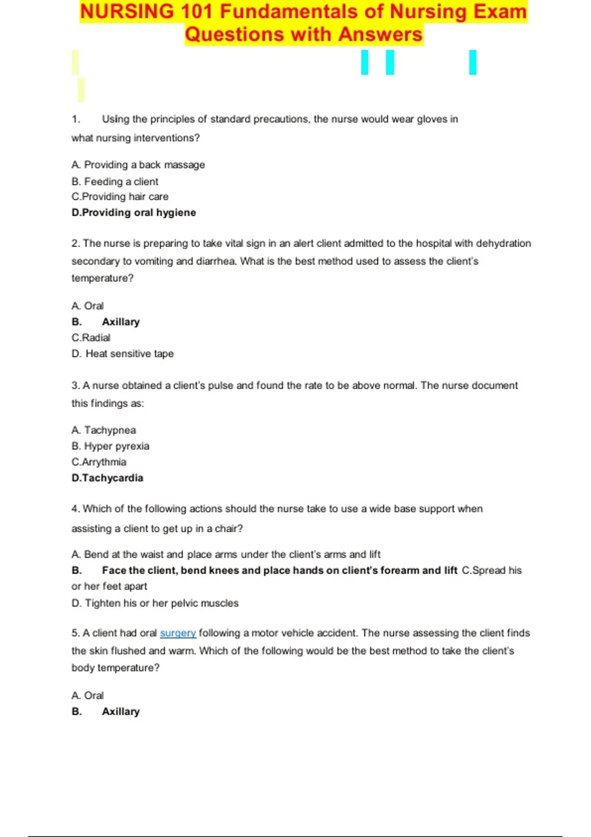 NURSING 101 Fundamentals of Nursing Exam Questions with Answers