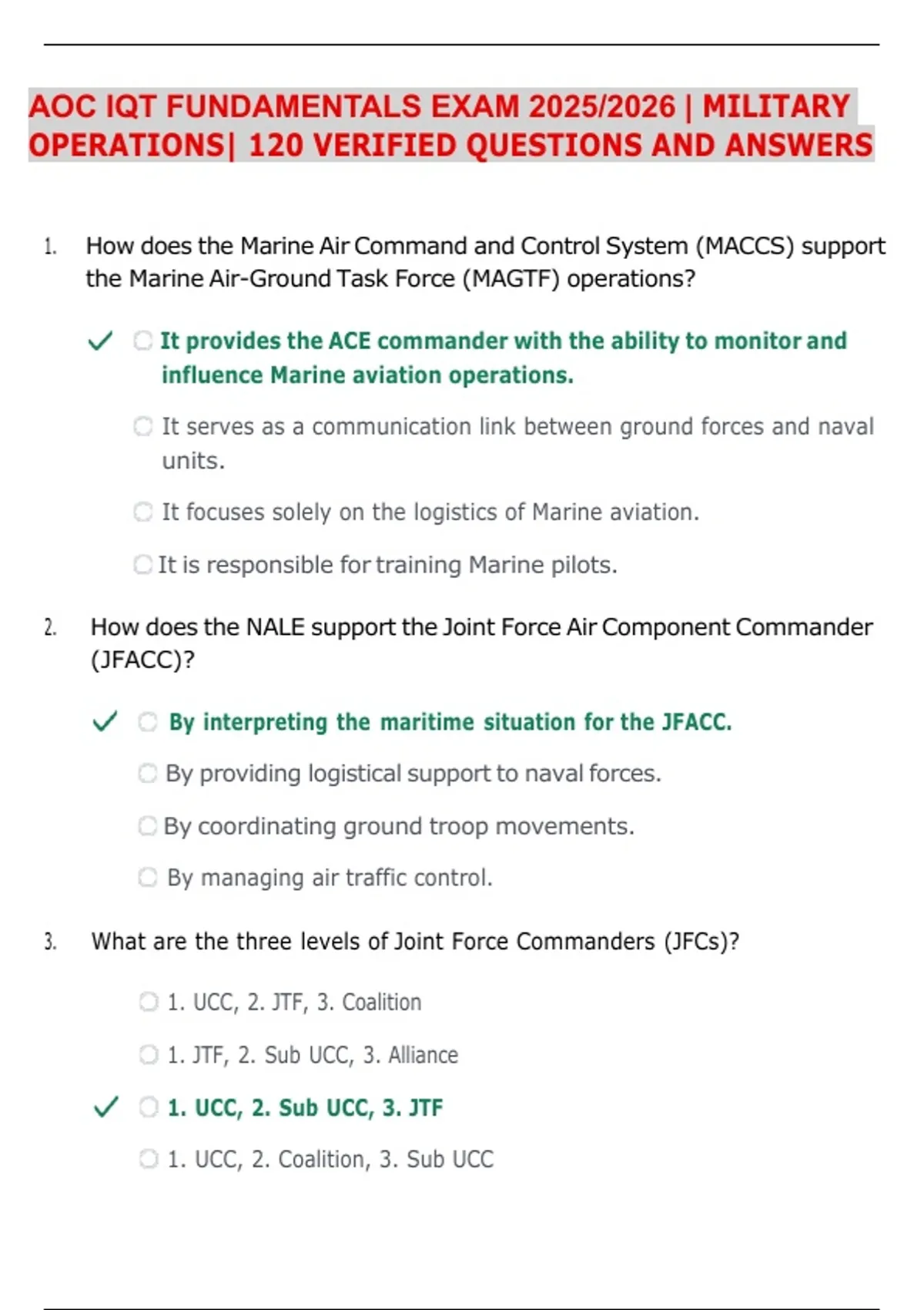 AOC IQT FUNDAMENTALS EXAM 2025/2026 | MILITARY