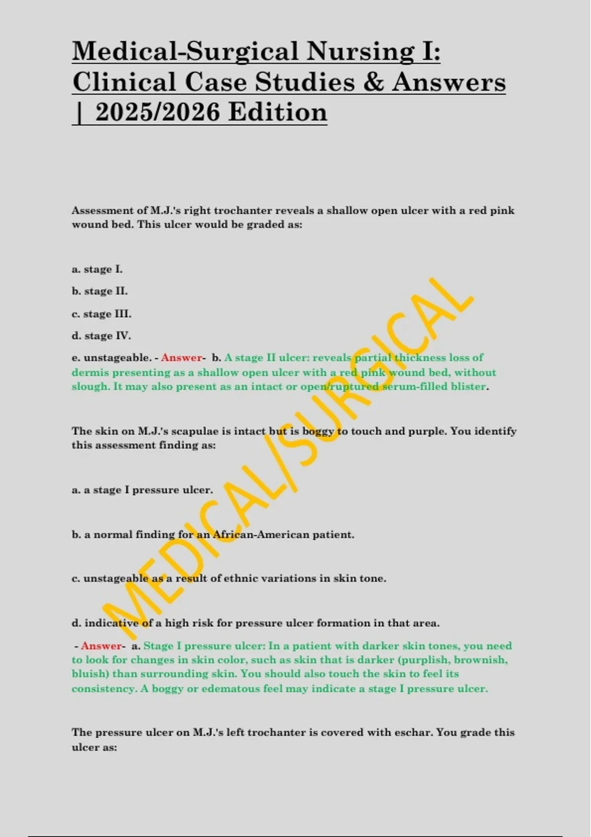 e. unstageable. - Answer- b. A stage II ulcer: reveals partial thickness loss of