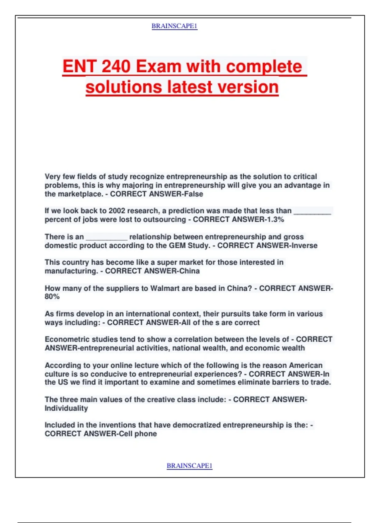 ENT 240 Exam with complete