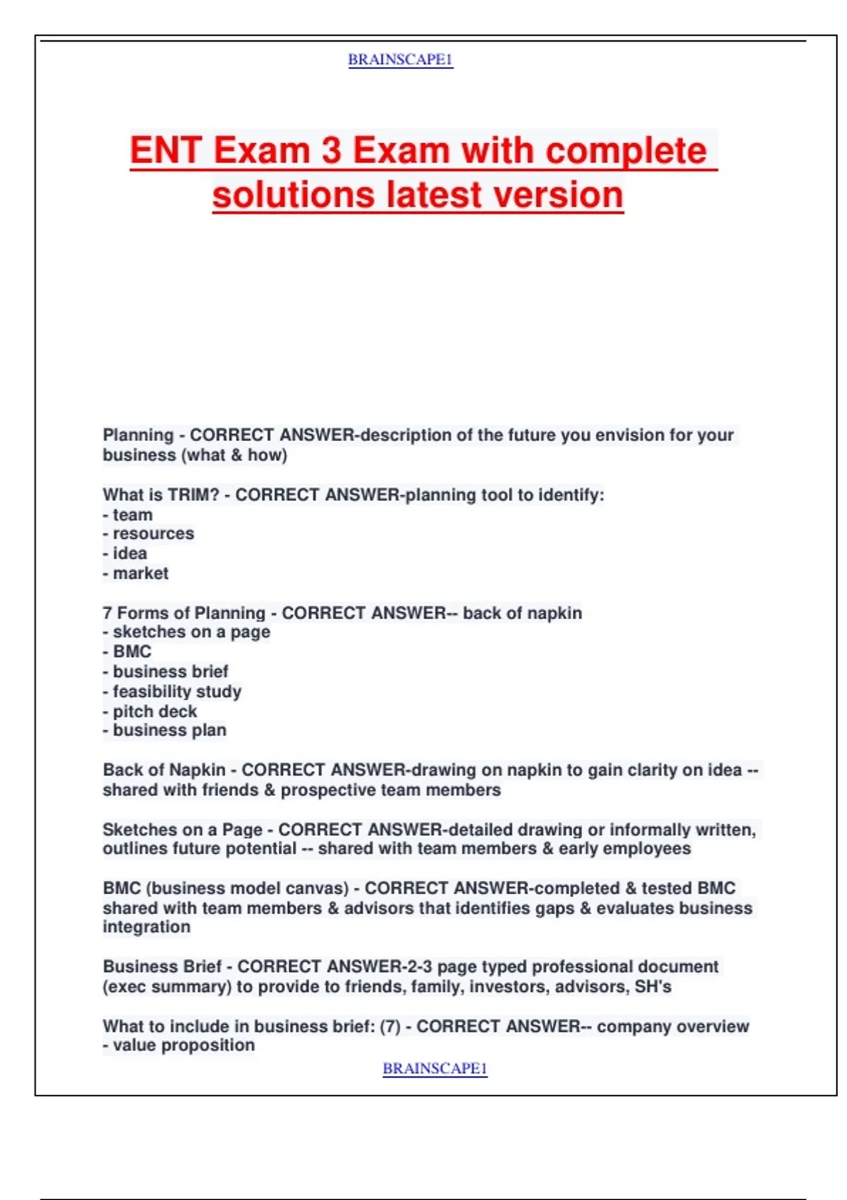Business Plan - CORRECT ANSWER-approx. 25+ page formal document &