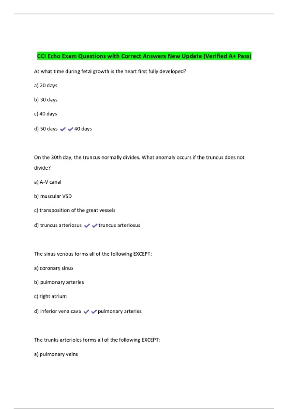 CCI Echo Exam Questions with Correct Answers New Update (Verified A+ Pass)