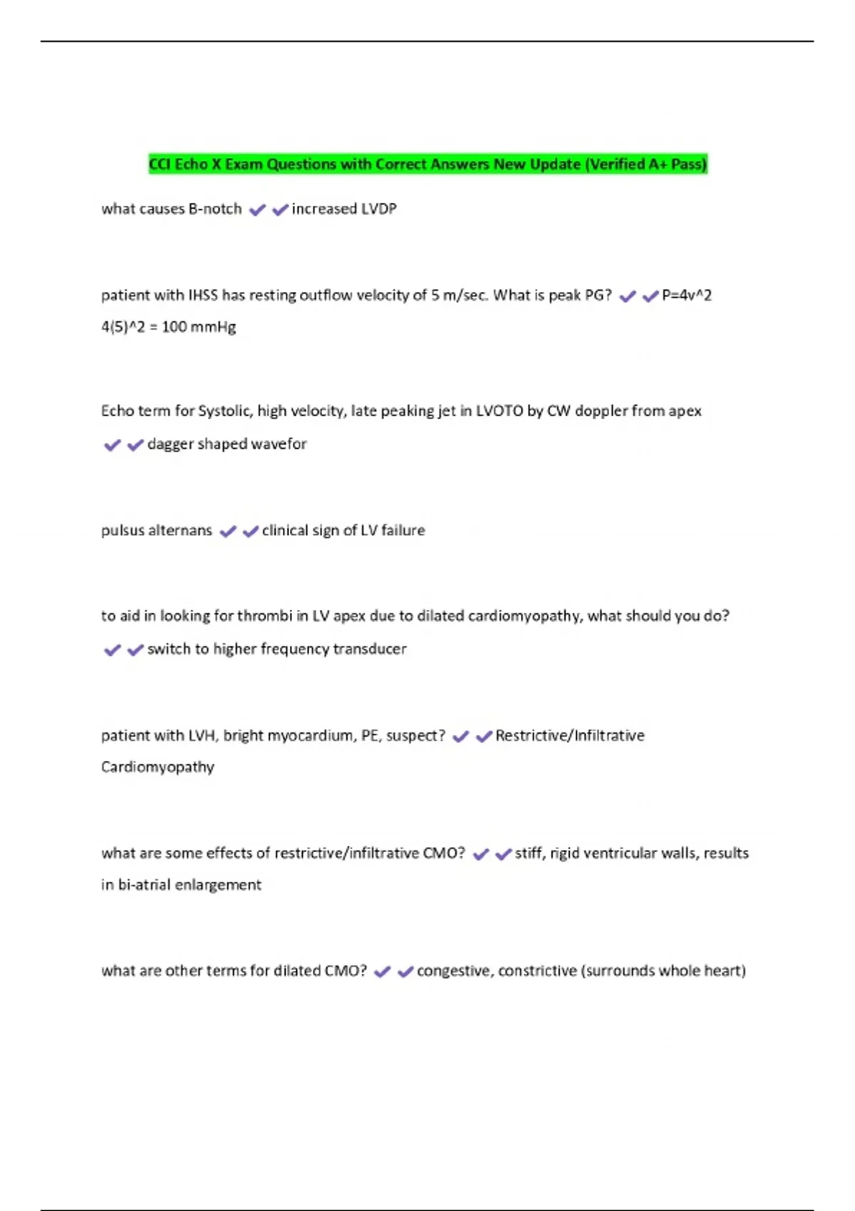 CCI Echo X Exam Questions with Correct Answers New Update (Verified A+ Pass)