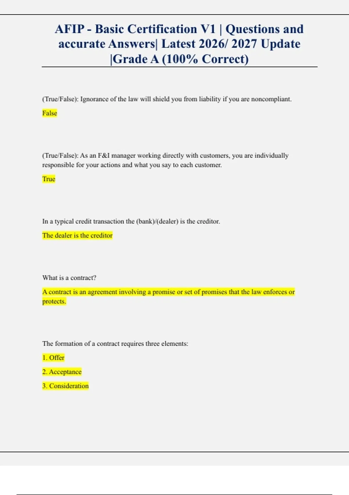 Get the AFIP Basic Certification V1 Exam Study Guide and Test Bank (2025 Edition) — a complete preparation resource for professionals in automotive finance, insurance, and compliance. This guide includes updated practice questions, detailed answer explanations, and compliance-focused case studies designed to mirror real exam content. Aligned with AFIP’s (Association of Finance & Insurance Professionals) current certification standards, the material covers ethics, federal regulations, product compliance, dealership procedures, and consumer protection laws. Perfect for dealership F&I managers, compliance officers, and professionals seeking AFIP certification renewal or advancement, this comprehensive study package ensures full exam readiness and regulatory understanding.