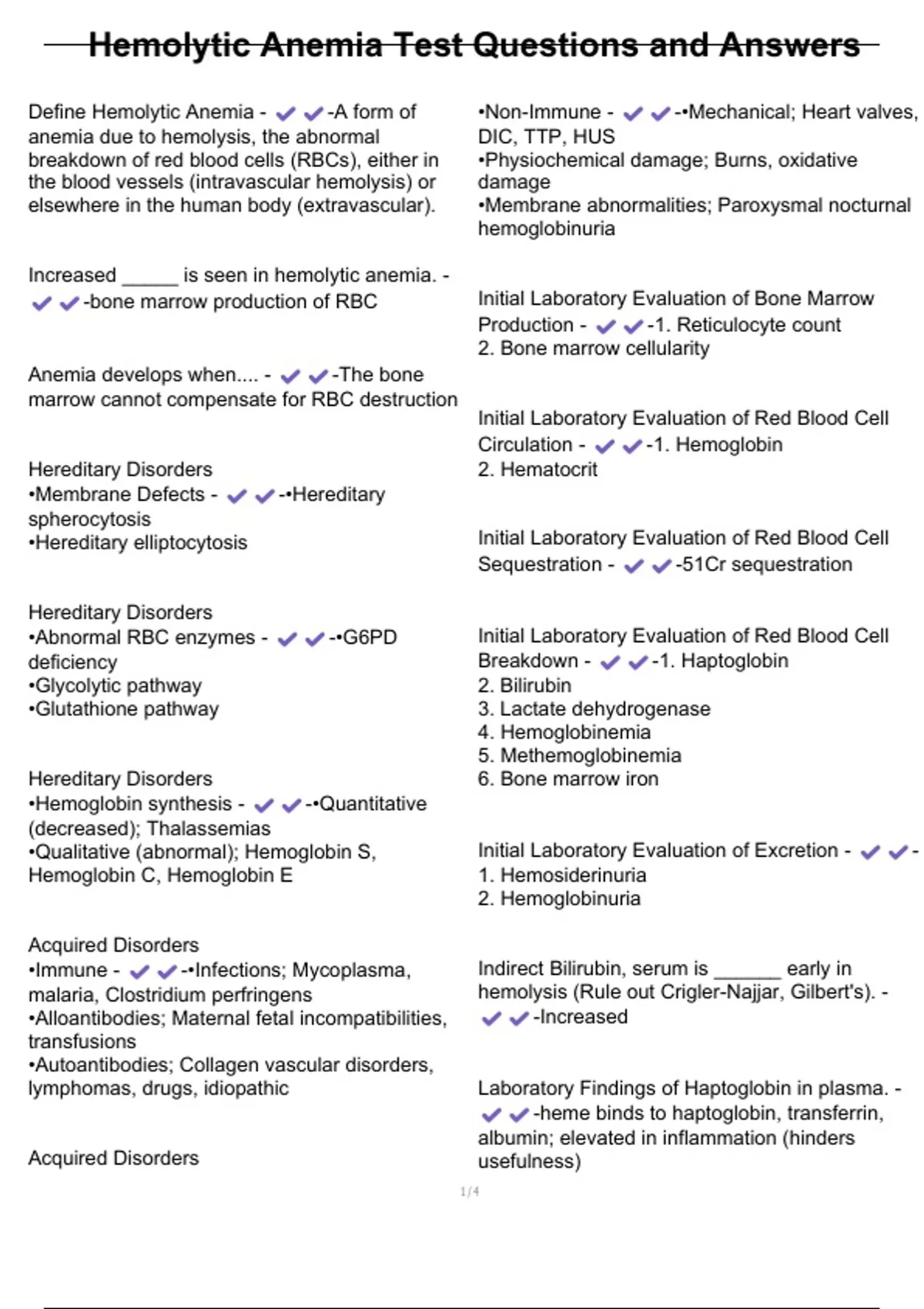 Hemolytic Anemia Test Questions and Answers