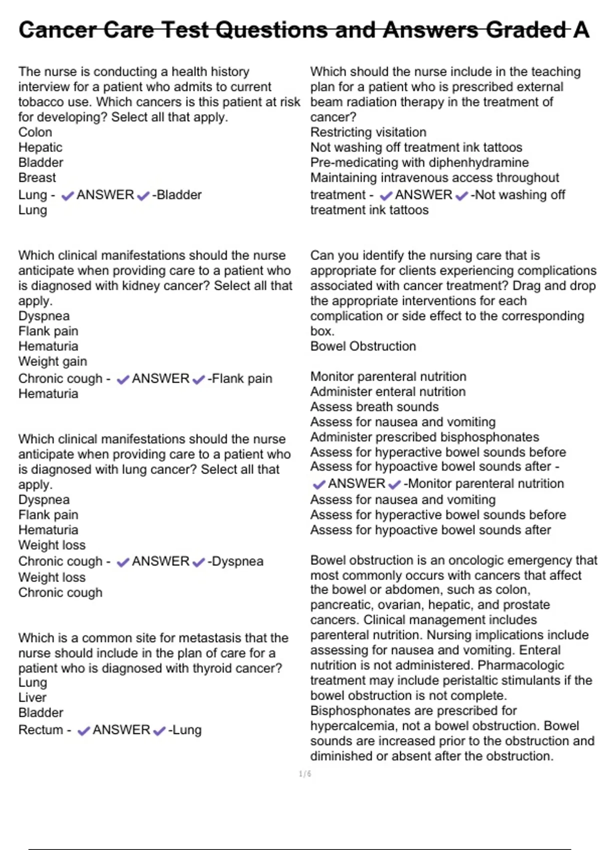 Cancer Care Test Questions and Answers Graded A