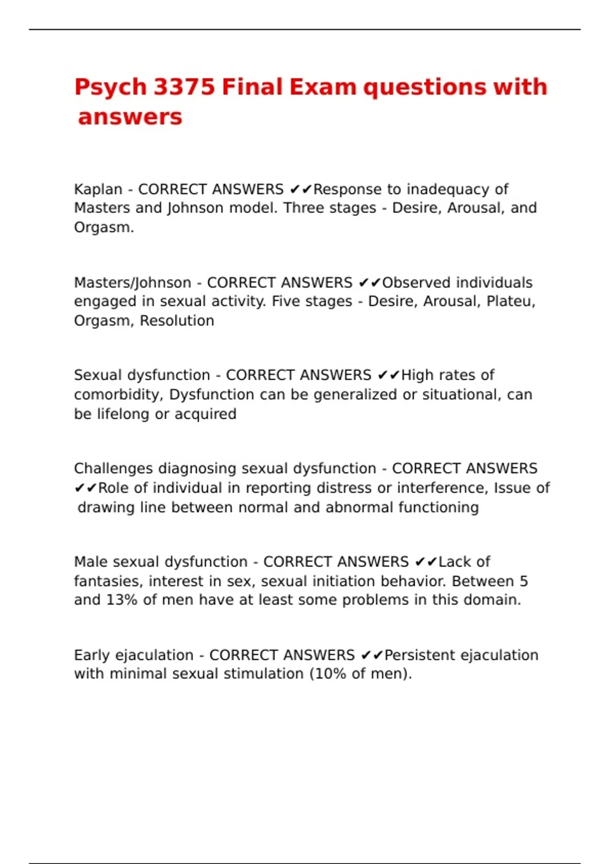 Erectile disorder - CORRECT ANSWERS ✔✔Difficulty sustaining